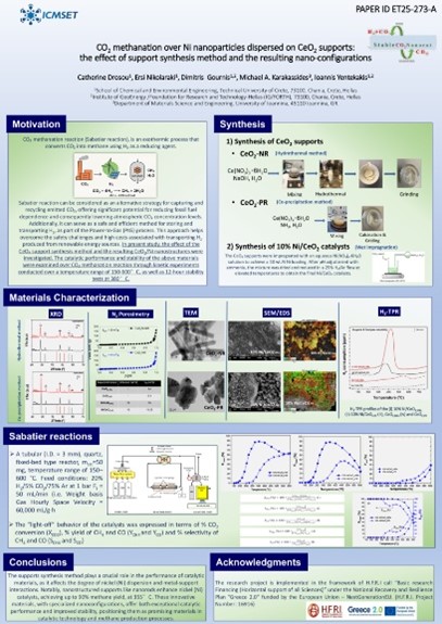 Η εργασία έχει τίτλο “CO2 methanation over Ni nanoparticles dispersed on CeO2supports: the effect of support synthesis method and the resulting nano-configurations” και πραγματοποιήθηκε στο πλαίσιο του ερευνητικού έργου «Καινοτόμος σχεδιασμός σταθερών, αποτελεσματικών και επιτόπια αναγεννήσιμων νανοκαταλυτών για την ανακύκλωση του CO2 με τις διεργασίες Μεθανιοποίησης CO2 και ξηρής (CΟ2) αναμόρφωσης με μεθάνιο-StableCO2Nanocat” με συντονιστή και Επιστημονικό Υπεύθυνο τον Καθηγητή Ιωάννη Γεντεκάκη. Χρηματοδοτείται από το ΕΛ.ΙΔ.Ε.Κ. στο πλαίσιο της δράσης «Χρηματοδότηση της Βασικής Έρευνας (Οριζόντια υποστήριξη όλων των Επιστημών)» του Εθνικού Σχεδίου Ανάκαμψης και Ανθεκτικότητας «Ελλάδα 2.0» με τη χρηματοδότηση της Ευρωπαϊκής Ένωσης – NextGenerationEU (Αριθμός Έργου ΕΛ.ΙΔ.Ε.Κ.: 16916).