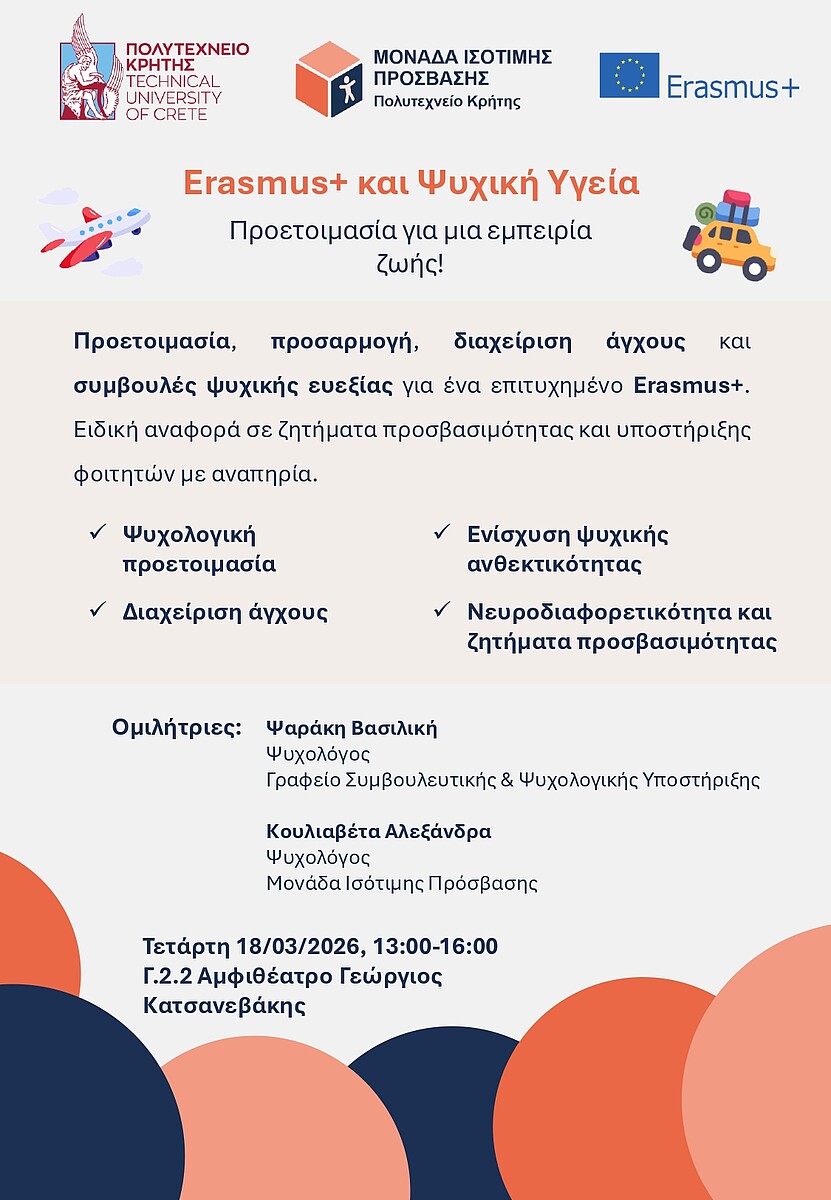Τo Τμήμα Ακαδημαϊκής και Εκπαιδευτικής Κινητικότητας του Πολυτεχνείου Κρήτης διοργανώνει ενημερωτική εκδήλωση/συνάντηση με τίτλο: