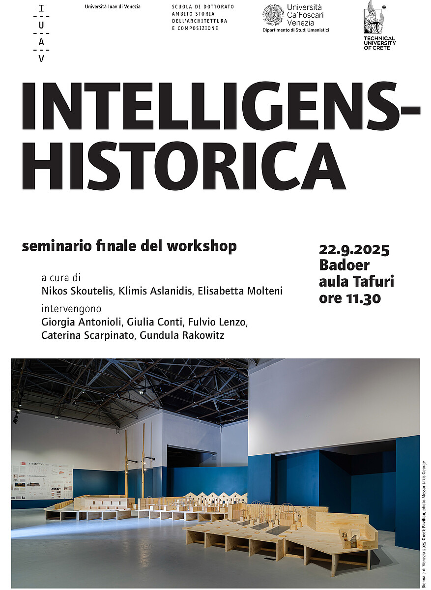 Την Δευτέρα 22 Σεπτεμβρίου 2025 το Πανεπιστημιακό Ινστιτούτο Αρχιτεκτονικής Βενετίας (I.U.A.V.) φιλοξενεί στην αίθουσα Manfredo Tafuri τις εργασίες ολοκλήρωσης του τριήμερου εργαστηρίου, που οργάνωσαν οι Καθηγητές Νίκος Σκουτέλης και Κλήμης Ασλανίδης της Σχολής Αρχιτεκτόνων Μηχανικών του Πολυτεχνείου Κρήτης, στο οποίο συμμετέχουν φοιτητές των Σχολών Αρχιτεκτόνων της Ελλάδας και του I.U.A.V.