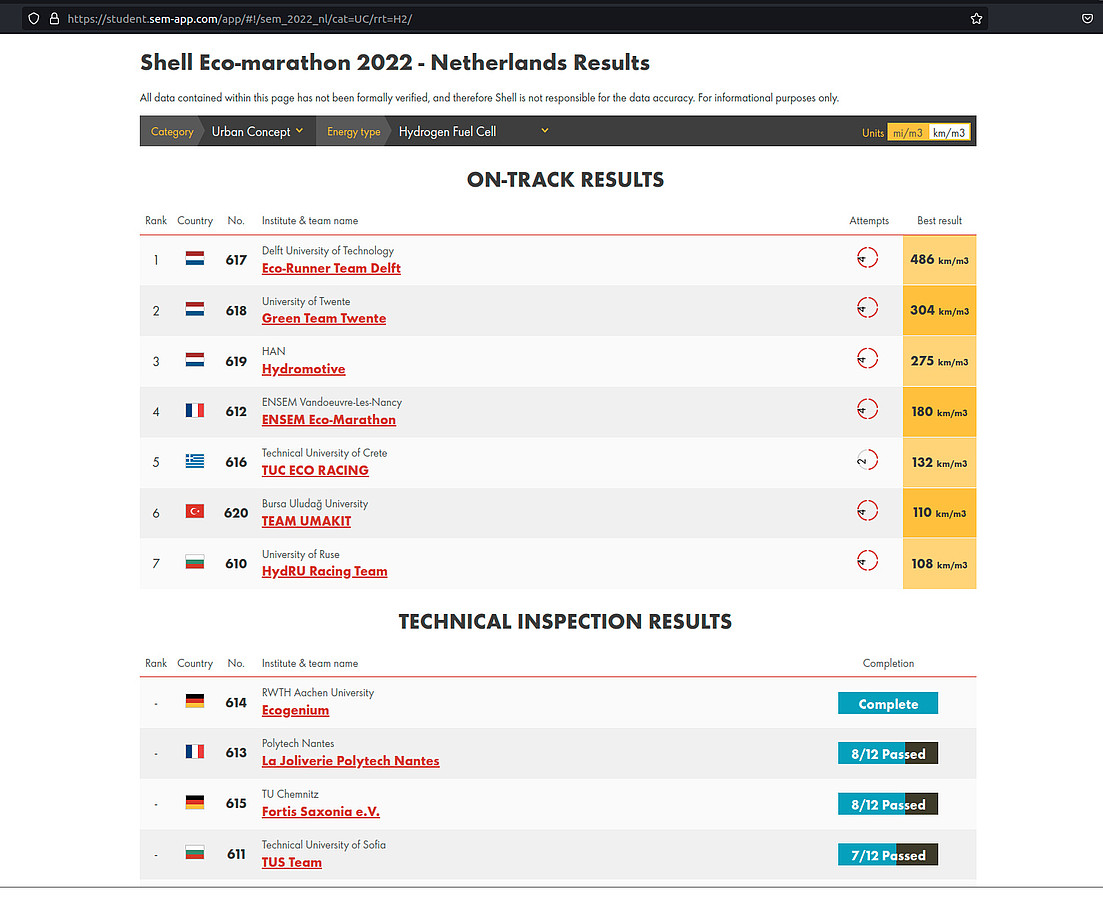Το ER2022 εξετάστηκε διεξοδικά από τον τεχνικό έλεγχο της διοργάνωσης, ώστε να πιστοποιηθεί η καταλληλότητα και η συμμόρφωσή του με τις προδιαγραφές του αγώνα. Μόνο οι οκτώ από τις έντεκα ομάδες της κατηγορίας Urban Concept H2 πέρασαν τον τεχνικό έλεγχο και από αυτές μόνο οι εφτά κατάφεραν να πραγματοποιήσουν έγκυρη προσπάθεια στον αγώνα. Μετά τον τεχνικό έλεγχο η ομάδα TUCer διαγωνίσθηκε δύο φορές σε ένα από τα διασημότερα αυτοκινητοδρόμια προδιαγραφών Moto GP της Ευρώπης κερδίζοντας, τελικά, την πέμπτη θέση. Άλλη μια αγωνιστική εμπειρία προστέθηκε στο ημερολόγιο της ομάδας, προσφέροντας στα μέλη της υψηλής ποιότητας εκπαίδευση και μοναδικές εμπειρίες.
