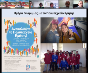 Περισσότεροι από 400 μαθητές Λυκείου και άλλοι ενδιαφερόμενοι είχαν την ευκαιρία να γνωρίσουν διαδικτυακά το Πολυτεχνείο Κρήτης στο πλαίσιο της εσπερίδας επαγγελματικού προσανατολισμού που διοργανώθηκε από το Κ.Ε.Σ.Υ. Ηρακλείου, στις 19/05/2021. Στο πλαίσιο της διοργάνωσης πραγματοποιήθηκαν παρουσιάσεις από τα Ανώτατα Εκπαιδευτικά Ιδρυμάτων της Κρήτης.