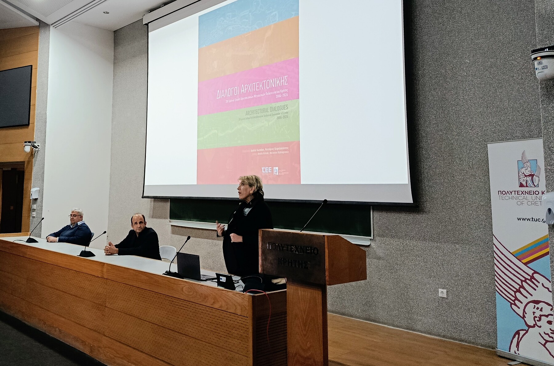 Για το βιβλίο μίλησαν ο Κοσμήτορας της Σχολής Αρχιτεκτόνων Μηχανικών Αν. Καθηγητής Αλέξανδρος Βαζάκας και οι επιμελητές του τόμου Καθηγήτρια Αμαλία Κωτσάκη και Επ. Καθηγητής Νεκτάριος Κεφαλογιάννης.