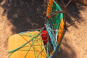 Τα νήματα αυτής της «Μικρής Πράσινης Θάλασσας» απλώθηκαν παντού στο Πάρκο. Η διαδρομή από την είσοδο μέχρι το μουσείο πλαισιώθηκε από καλλιτεχνικές παρεμβάσεις των μαθητών με καρέκλες-γλυπτά φτιαγμένες από φύλλα, κλαδιά και άλλες πρώτες ύλες που οι μαθητές συνέλεξαν κατά την έρευνα πεδίου που πραγματοποίησαν τους τελευταίους μήνες στο Πάρκο. Προσωπικά αντικείμενα, ρούχα και άλλα αντικείμενα που χρησιμοποίησαν οι μαθητές κατά την έρευνά τους τοποθετήθηκαν σε διάφορα σημεία της διαδρομής, δημιουργώντας έτσι ένα νήμα που συνέδεε θεματικά την είσοδο και το φυλάκιο του Πάρκου με το αλώνι και το Μουσείο, καθώς και το θερμοκήπιο του Πάρκου. Τα έργα των μαθητών ανασύνθεσαν το Πάρκο με μεγάλη λεπτομέρεια, ενσυναίσθηση και καλλιτεχνική αρτιότητα, αναδεικνύοντας την εποχικότητα και τη βιοποικιλότητά του, αποτυπώνοντας έτσι τις πολυδιάστατες και εφήμερες ομορφιές του.