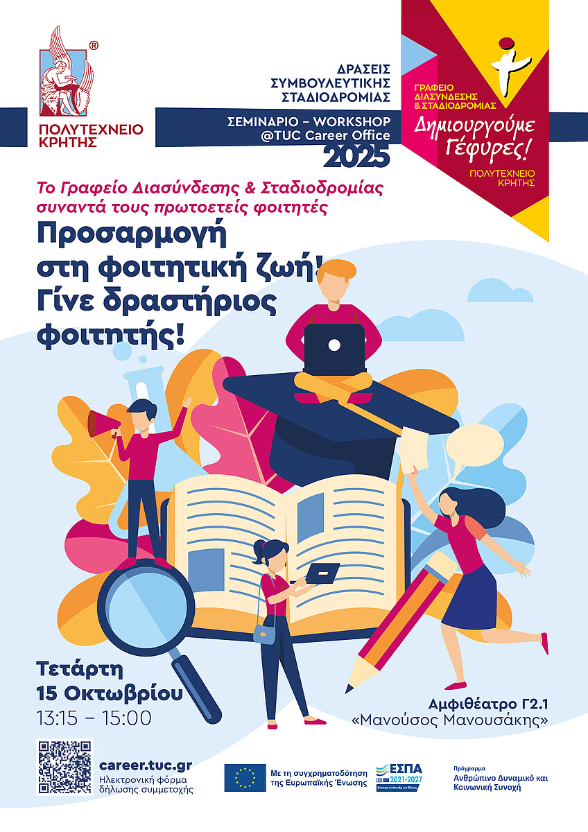 Διοργάνωση: Γραφείο Διασύνδεσης και Σταδιοδρομίας Πολυτεχνείου Κρήτης, τηλ: 2821037331, email: career-center@tuc.gr